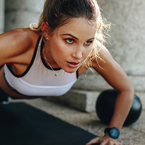 This full body movement is excellent for building strength and boosting cardio, working your arms, back, chest, core, legs and glutes. It’s a high energy movement (great for adding in as a HIIT movement) that will also help to burn fat and tone up. Learn more variations to mix up your burpees here. Another advanced variation of a push up, with an extra challenge to burn more energy, clapping push-ups include rapid, explosive movements that are perfect for targeting your chest, triceps and shoulders. This compound movement is another great full-body movement that’s particularly effective for strengthening your upper body, with plenty of work for your core and legs too.